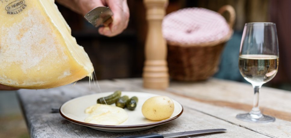 Das Original: Der Raclette du Valais AOP Wallis 65, ein vollkommenes Naturprodukt, ist unnachahmlich mit seinem Terroir verbunden. Er trägt die vollen Aromen der Bergkräuter in sich, da bei diesem echten Walliser Raclettekäse nur beste Rohmilch aus der Region verwendet wird.