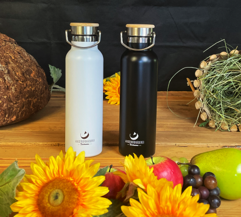 Thermosflasche im Milchflaschen-Design in schwarz oder weiss